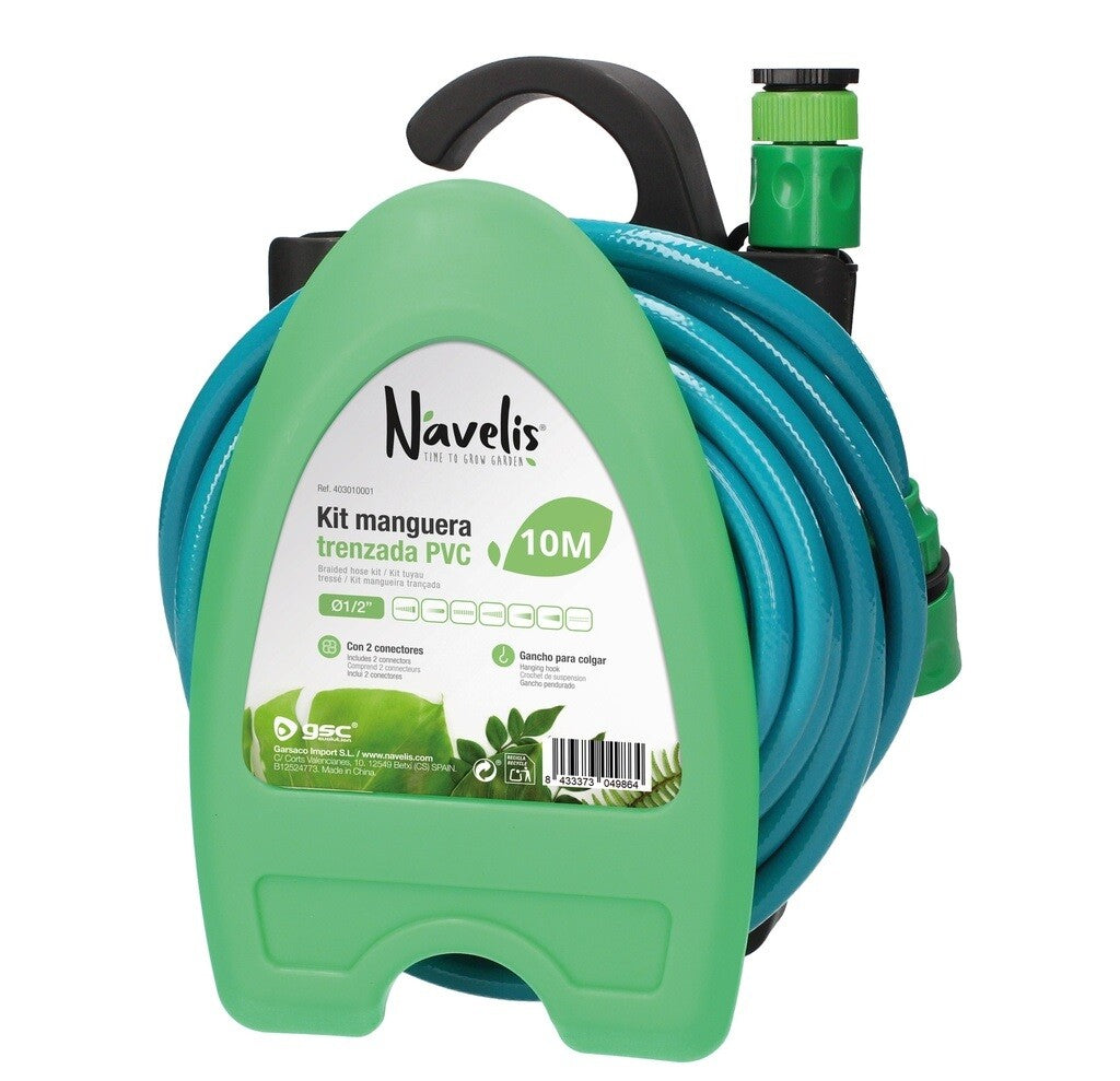 403010001 KIT 10m MANGUERA TRENZADA 1/2´ + PISTOLA + SOPORTE PARED NAVELIS