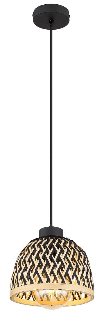 15767H2 LAMPARA COLGANTE 1xE27 LED 15W 230V Ø200mm BAMBU NATURAL NEGRO COLLY GLOBO