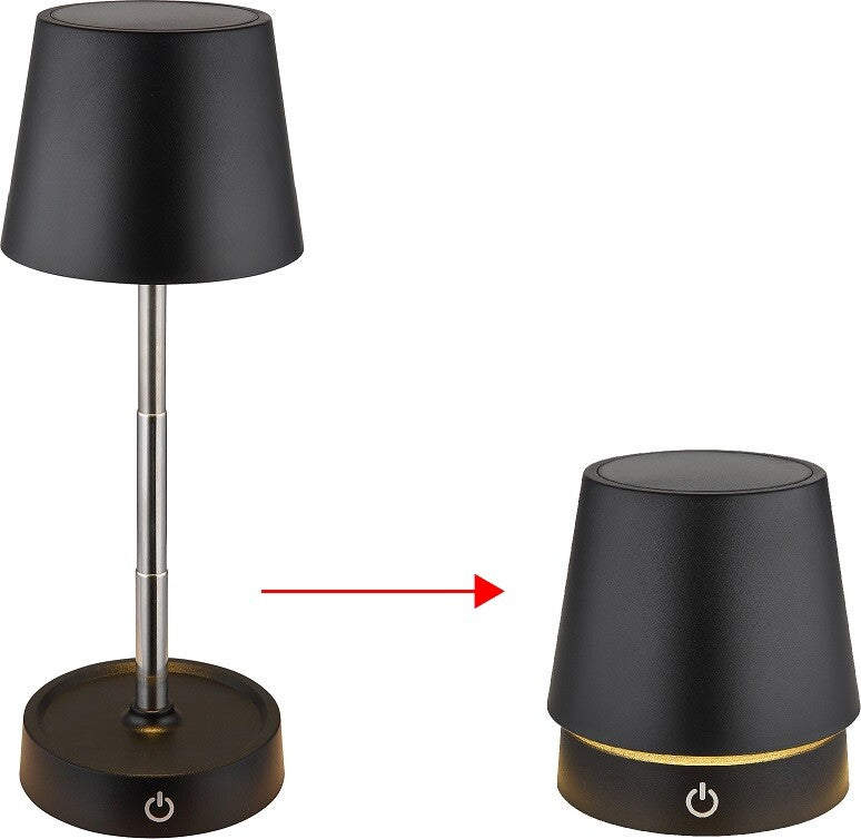 58446B LAMPARA SOBREMESA 1,2W 3000K 30Lm REGULABLE BATERIA NEGRA CARLOS GLOBO